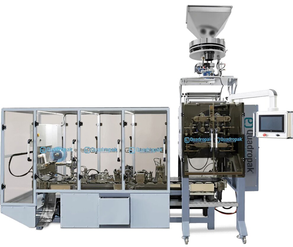 QP-1000-CPM — автоматическая карусельная упаковочная машина с объемно-весовой системой заполнения (10–14 каналов) для высокоточной упаковки бобовых культур в кирпичные пакеты высокой плотности.