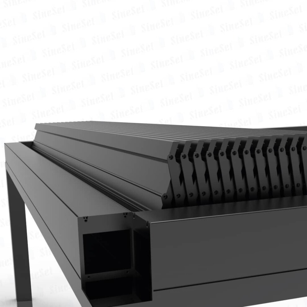 - Прочные алюминиевые рамы и подвижные ламели для гибкой настройки степени затенения и вентиляции.