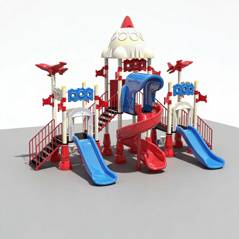 Модульный игровой комплекс GB‑05 из серии Galaksi представляет собой многоуровневую конструкцию с тематическим оформлением в космическом стиле. Комплекс объединяет функциональность, безопасность и привлекательный дизайн, способствуя активным формам детского досуга. Игровая зона оформлена в тематике «галактика» и включает три башни разной высоты, соединённые мостиками и переходами.