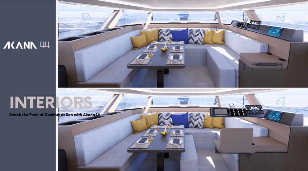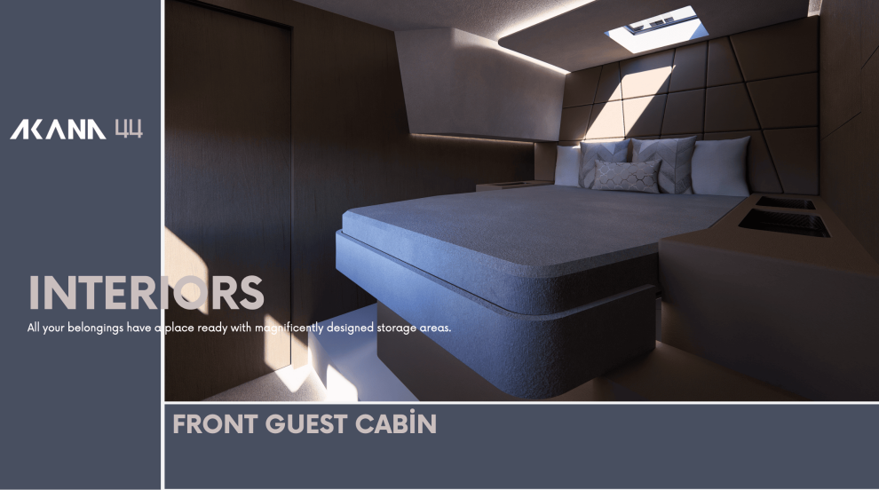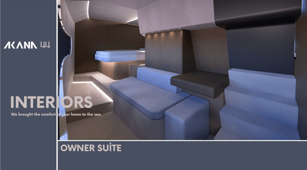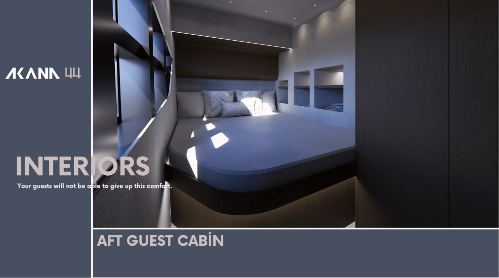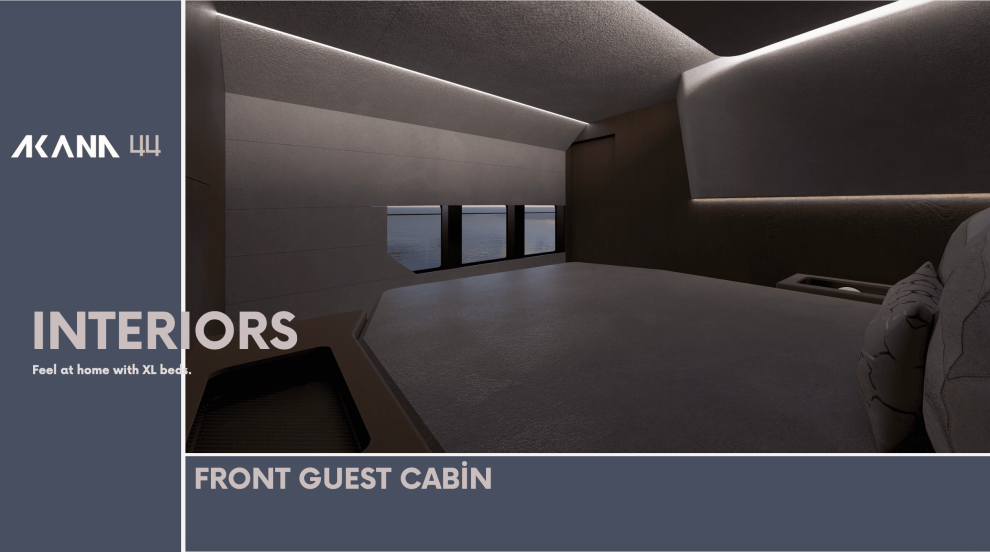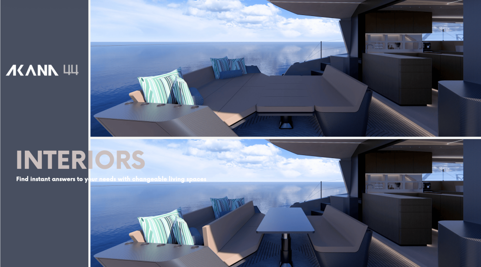Akana 44 — двухкорпусный электрический катамаран длиной 13,35 м из алюминиевого сплава серии 5083. Производитель — Akana Yacht (Турция). Тяговые установки — два подвесных электродвигателя DEWJET Rim Drive мощностью 45 кВт и тягой 4 700 Н·м каждый. Категория CE: класс B. Доступен в версии владельца (3 каюты) и чартерной версии (4 каюты).
