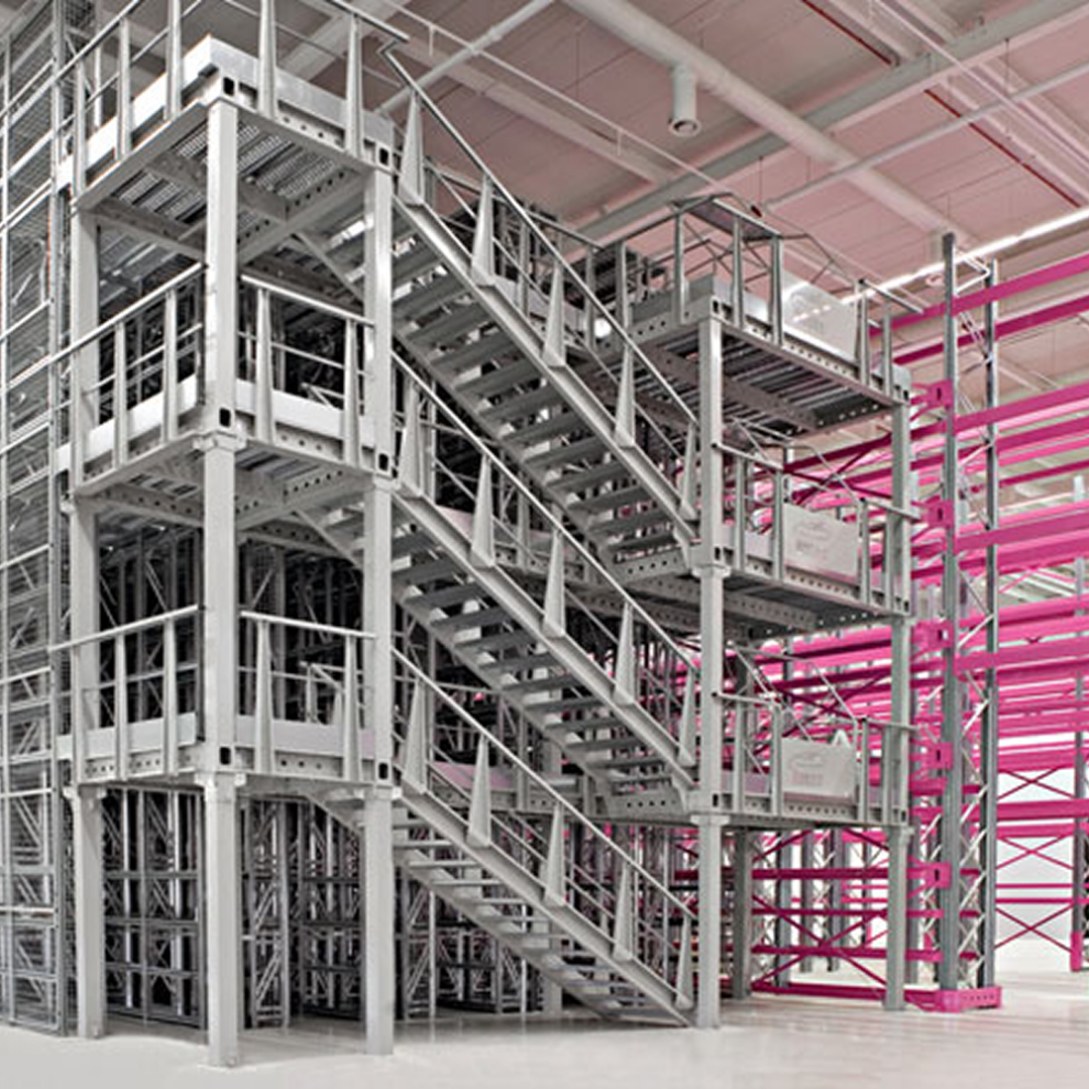 Модульная конструкция из стандартизированных стальных элементов для организации складского хранения. Болтовая сборка без сварки позволяет оперативно монтировать, демонтировать и перестраивать конфигурацию.