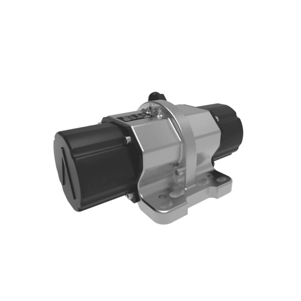 Промышленный вибрационный привод с лапчатым креплением и регулируемыми эксцентриковыми массами. Сертифицирован ATEX для работы в пылевзрывоопасных средах зон 21 и 22.
