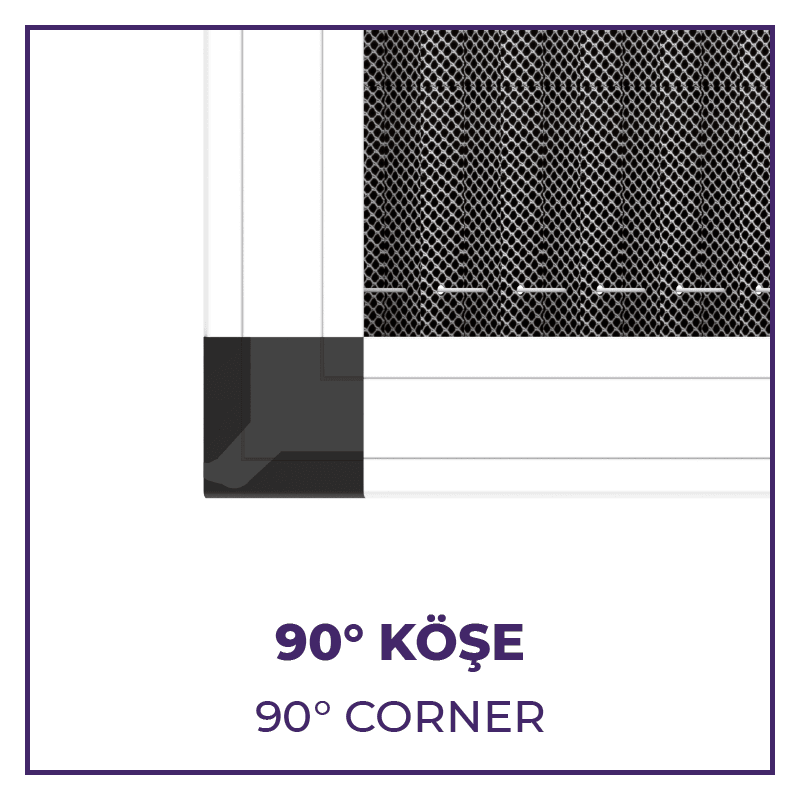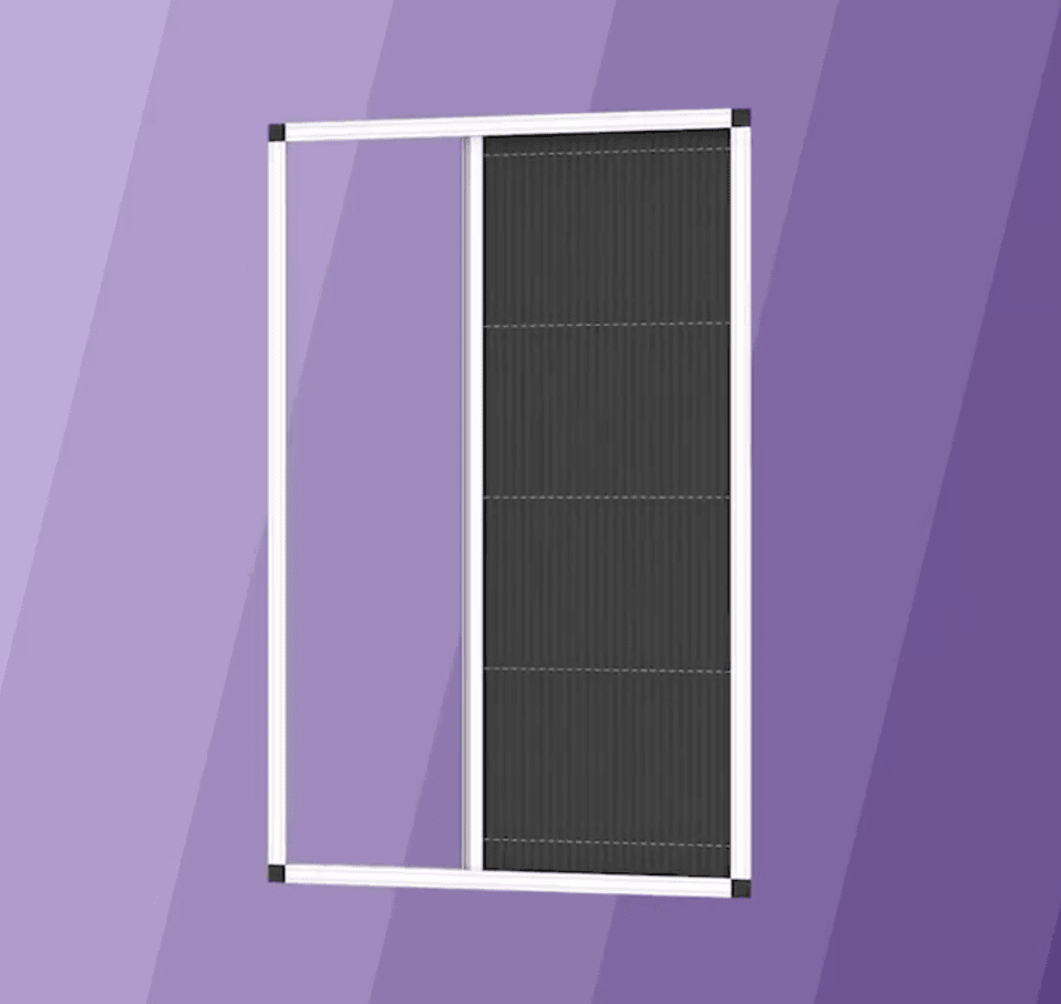 Москитная сетка Mini Plisse 90° — складная конструкция с алюминиевым профилем глубиной 18 мм и складкой 12 мм, подходит для окон, балконов и дверей из ПВХ и алюминия. Обеспечивает компактную установку и плотное прилегание, эффективно защищая от насекомых.