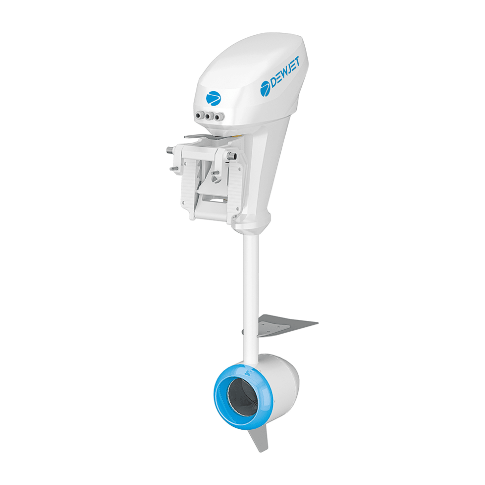 DEWJET DWE-OB-10 — подвесная электрическая силовая установка (outboard) мощностью 7 кВт (непрерывная) / 15 кВт (максимальная). Номинальное напряжение — 96 В, эквивалентная мощность ДВС — 9,9 л.с. Двигатель выполнен на базе Rim-Type BLDC с закрытым рабочим колесом. Класс защиты двигателя — IP68, маркировка CE, соответствие стандартам EN ISO 25197, EN ISO 16315.