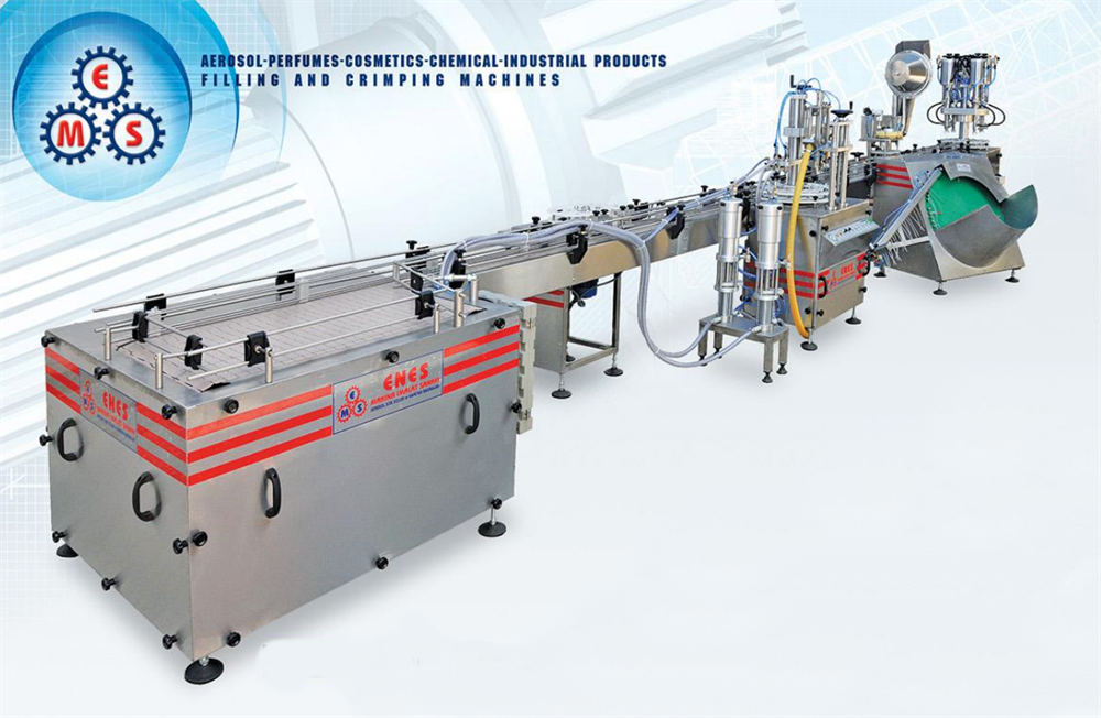 Автоматическая линия розлива аэрозолей AEF-6000 — оборудование пищевой промышленности для высокопроизводительного розлива аэрозолей из Турции