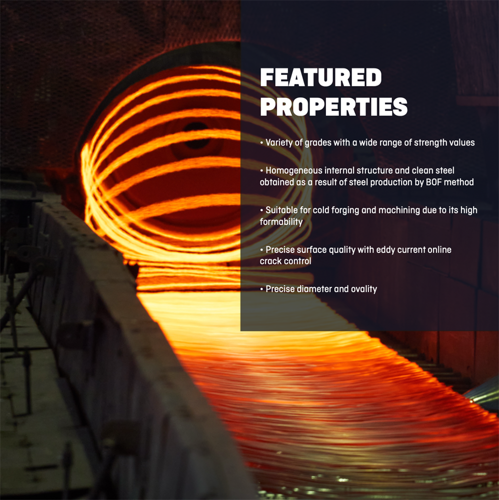 Катанка пригодна для холодной штамповки, обеспечивает однородное распределение твердости после термообработки (закалка + отпуск), хорошую обрабатываемость резанием и легкое удаление окалины кислотной очисткой.