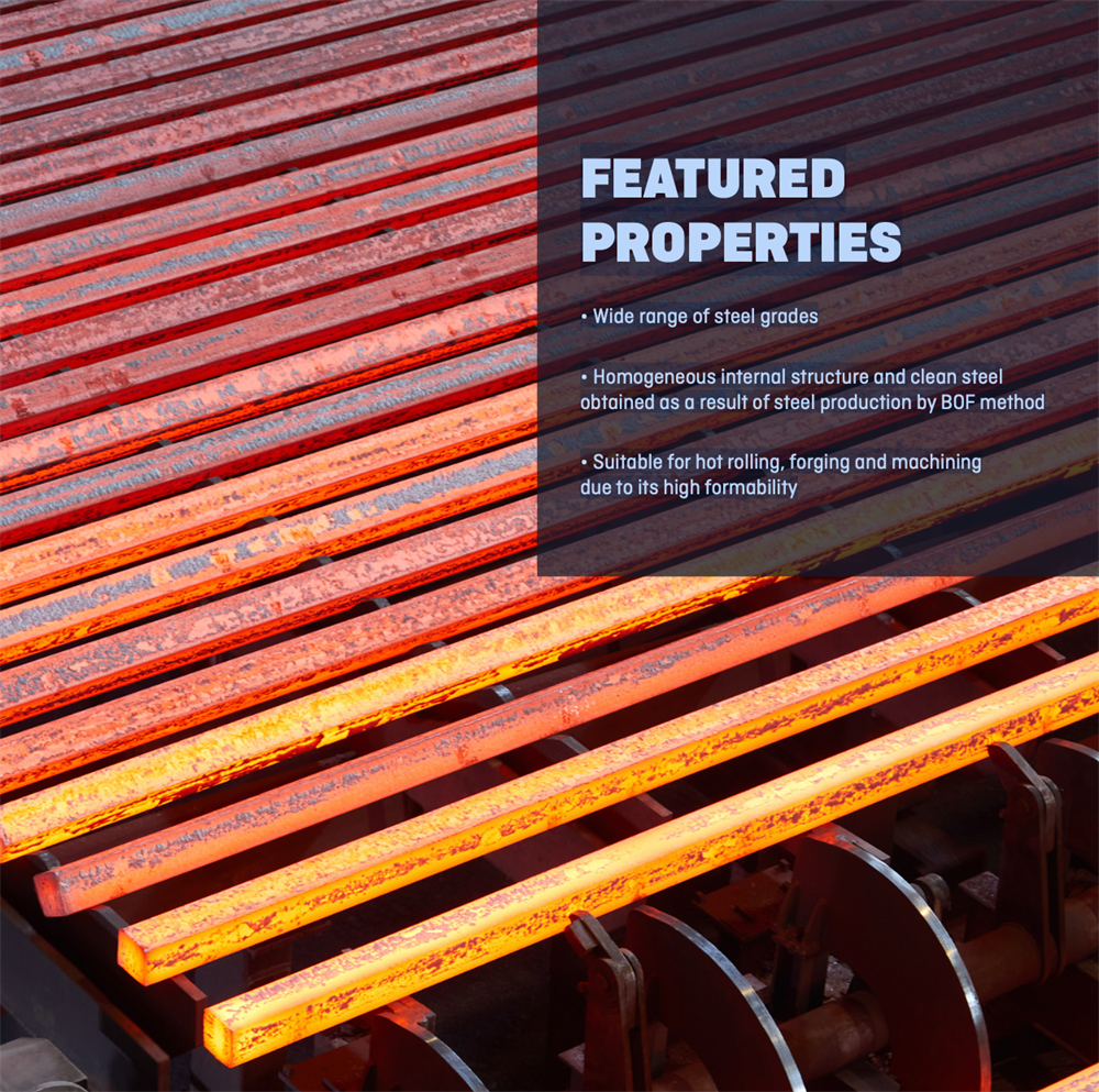 Заготовки используются во всех отраслях обрабатывающей промышленности для производства длинномерных изделий методом горячей прокатки, ковки и механической обработки. Обеспечивают эффективную переработку при оптимальных скоростях процесса.