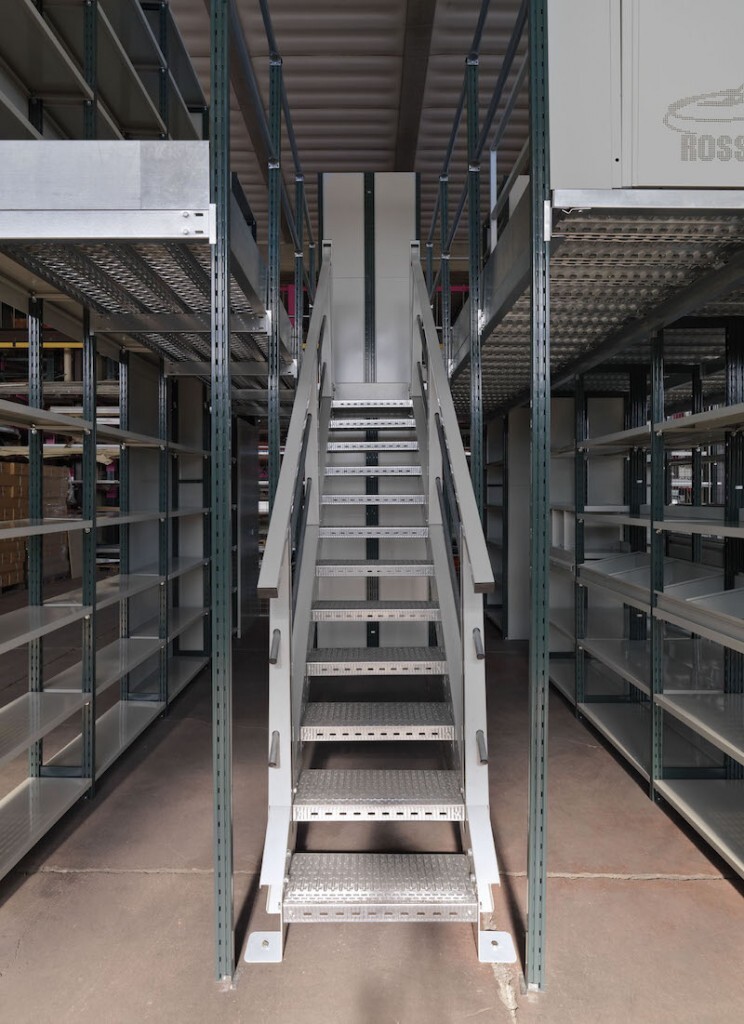 Различные решения по высоте секций и глубине полок дают возможность создавать многоярусные уровни хранения и индивидуально настраивать параметры под каждую категорию товаров. Система может быть дополнена лестницами, защитными ограждениями и разделителями пространства.
