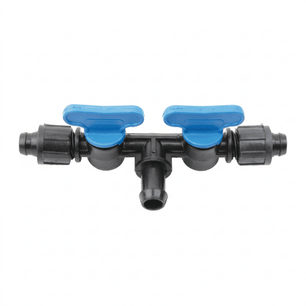 Вентиль используется в системах капельного орошения для управления потоком воды и распределения её по отводам системы. Позволяет разветвлять трубопровод в трёх направлениях. Имеет Т-образную форму с резьбовыми соединениями на всех трёх выводах. Служит для подключения основного трубопровода и боковых ответвлений в капельной системе.