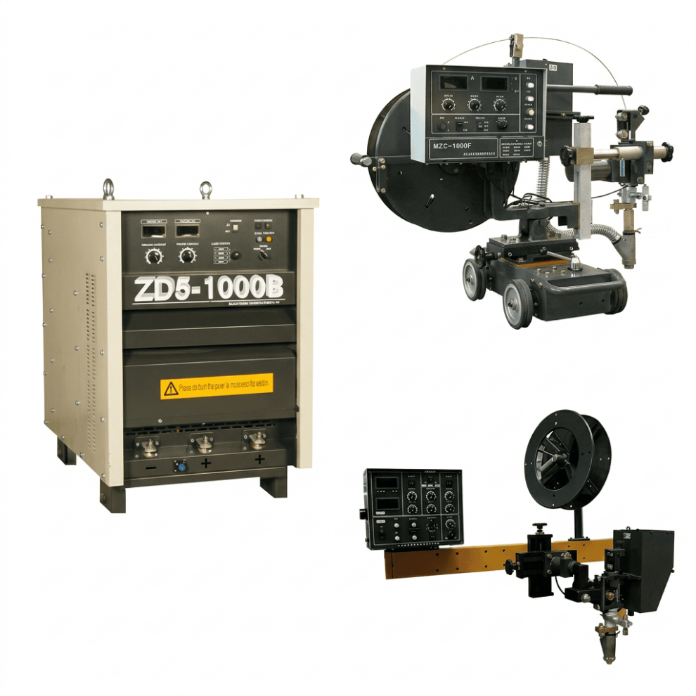 Установка автоматической сварки под флюсом ZD5-1000 представляет собой комплексное промышленное решение с полностью автоматизированным процессом сварки, предназначенным для повышения производительности и качества сварных соединений. Комплект включает источник питания ZD5-1000, сварочный трактор MZC-1250F19 для перемещения вдоль изделия и головку MZ9-1250B11, обеспечивающую точное позиционирование и подачу сварочной проволоки.