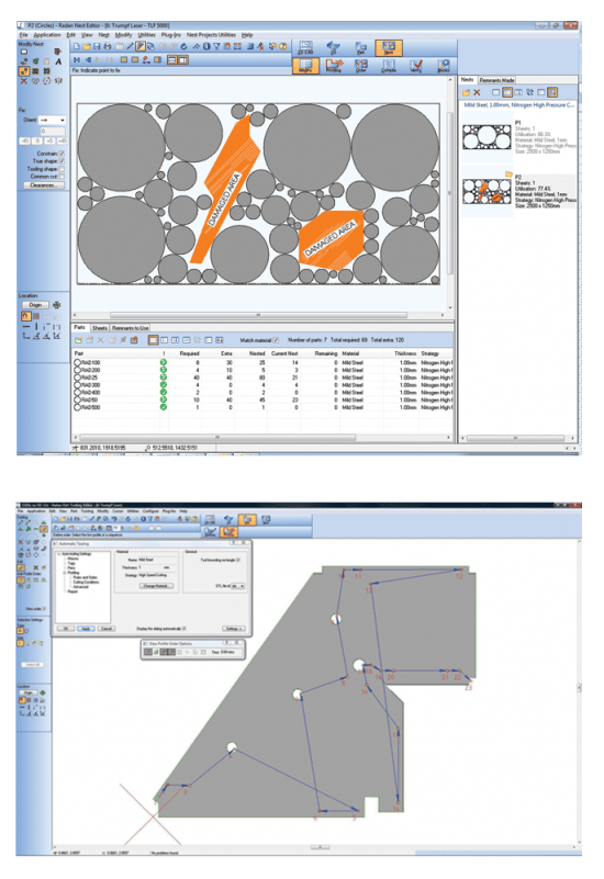 Расходники меняются легко, сервис минимален, оптика защищена от загрязнений, реализован мониторинг защитного стекла. Рабочий ресурс диодов — до 100 000 часов, снижена потребность в охлаждении. Встроенное ПО Radan и Lantek поддерживает массовую обработку DXF/DWG, автоматическую оптимизацию резки, безопасное управление и гибкую автоматизацию.