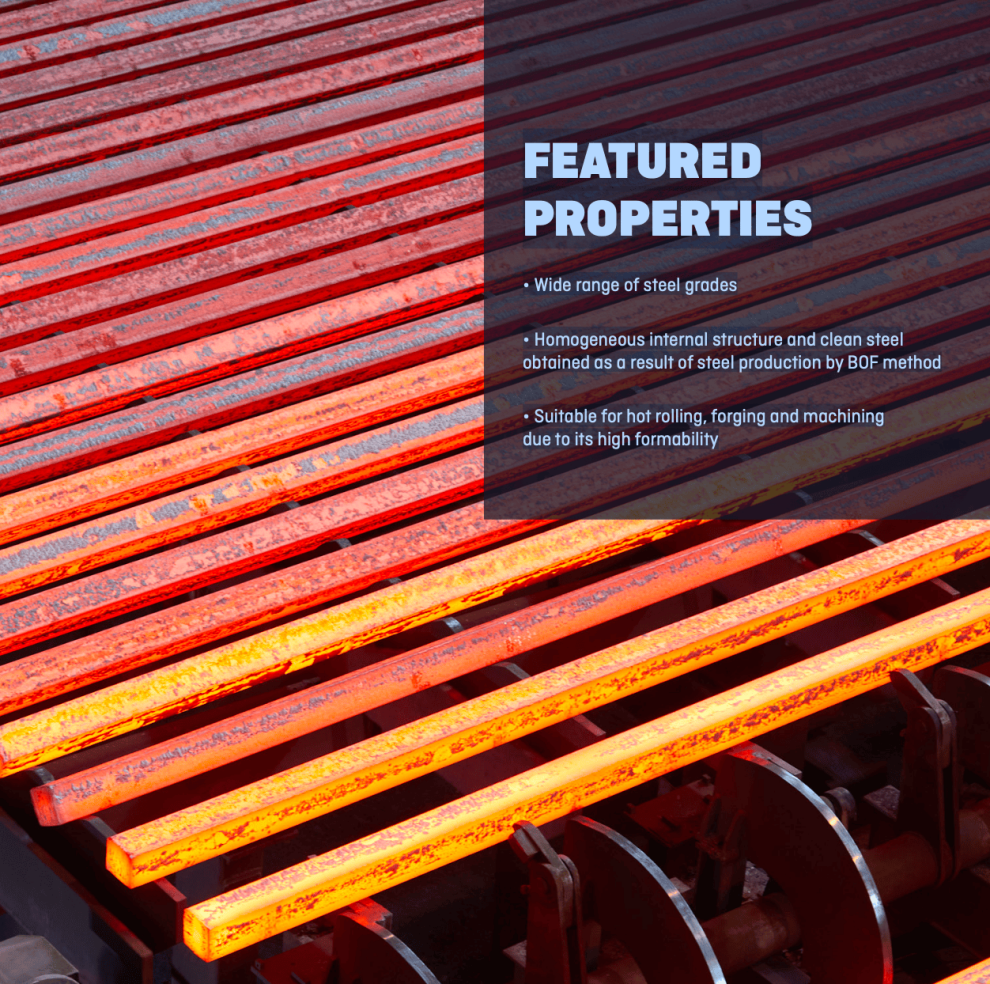 - Заготовки для горячей прокатки, ковки, механической обработки, производства длинномерных изделий